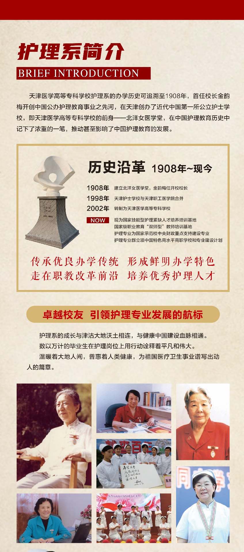 护理党支部在学校党委的正确领导和科学谋划下,坚持以习近平新时代中国特色社会主义思想为指导,深刻理解和准确把握新时代党的建设总要求,充分发挥院系党组织战斗堡垒作用,以办人民满意的卫生职业教育为己任,聚焦高质量发展主题主线,以高质量党建引领高质量发展,把党建“标杆”院系创建和护理专业群“双高”建设项目作为推进院系高质量发展的有力抓手,以护理百年育人文化为动力源泉,在传承、创新、发展中着力打造具有新...
