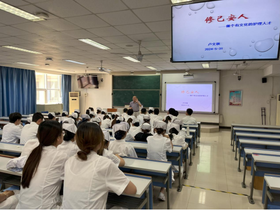 卢文秋教授做主题为“修己安人 做个有文化的护理人才”的讲座