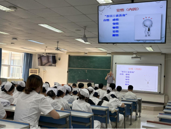 卢教授结合自身多年的工作经验和工作中的真实案例,以先进的服务理念、生动的沟通技巧、鲜活的临床实例,从护理服务现状入手,深入剖析了医学人文在实习和工作过程中的重要性。卢教授告诉同学们,医学人文不只是一个学科而是一种素质,是从医者心怀天下、悲悯苍生;是患者以礼相待、真心相托;是医患之间相互信任、和谐相融。