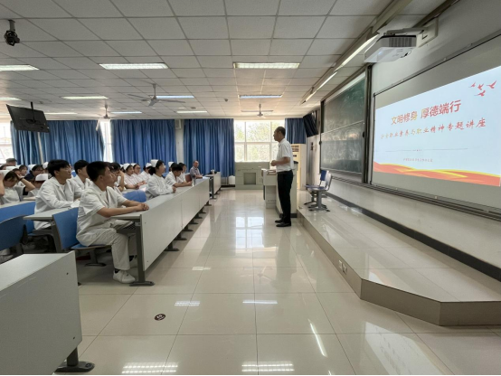 实习阶段是医学生从学校走向社会、由学生向职业护理工作者过渡的关键阶段。护理实习生不仅要有扎实的护理专业知识,要有过硬的操作技术,更要具备良好的护理职业素养,本次讲座,使学生们认识到护患沟通的重要性,增强了护理学生职业素养,为今后成为一名合格护士打下坚实基础。
