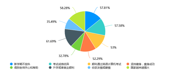 面对新学期生活,大多数学生准备将主要精力投入到努力学习中,兼顾健康生活和适量运动,希望新学期掌握更多的专业知识、进一步提升实践能力、保持良好的心理状态,学有所得。调研显示74.44%的同学制定了学业规划,63.03%的同学制定了技能提升规划, 50.62%的同学制定了就业规划,47.39%的同学制定了实践实习规划,45.41%的同学制定了体育锻炼规划,28.29%的同学制定了创新发展规划。从调研中不难发现学生们持续奋斗、坚持拼搏的精神风貌一如既往。