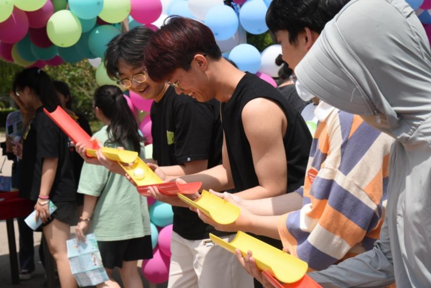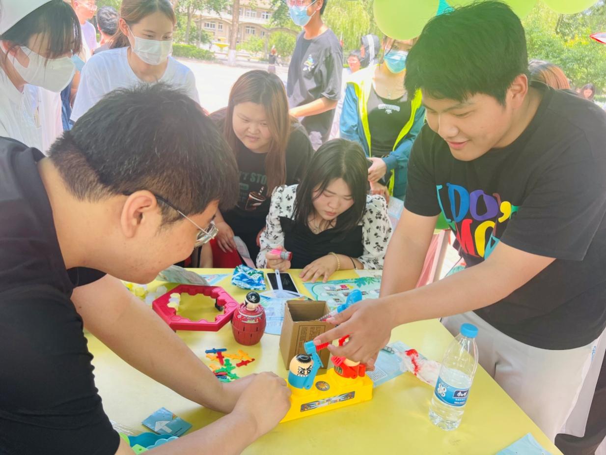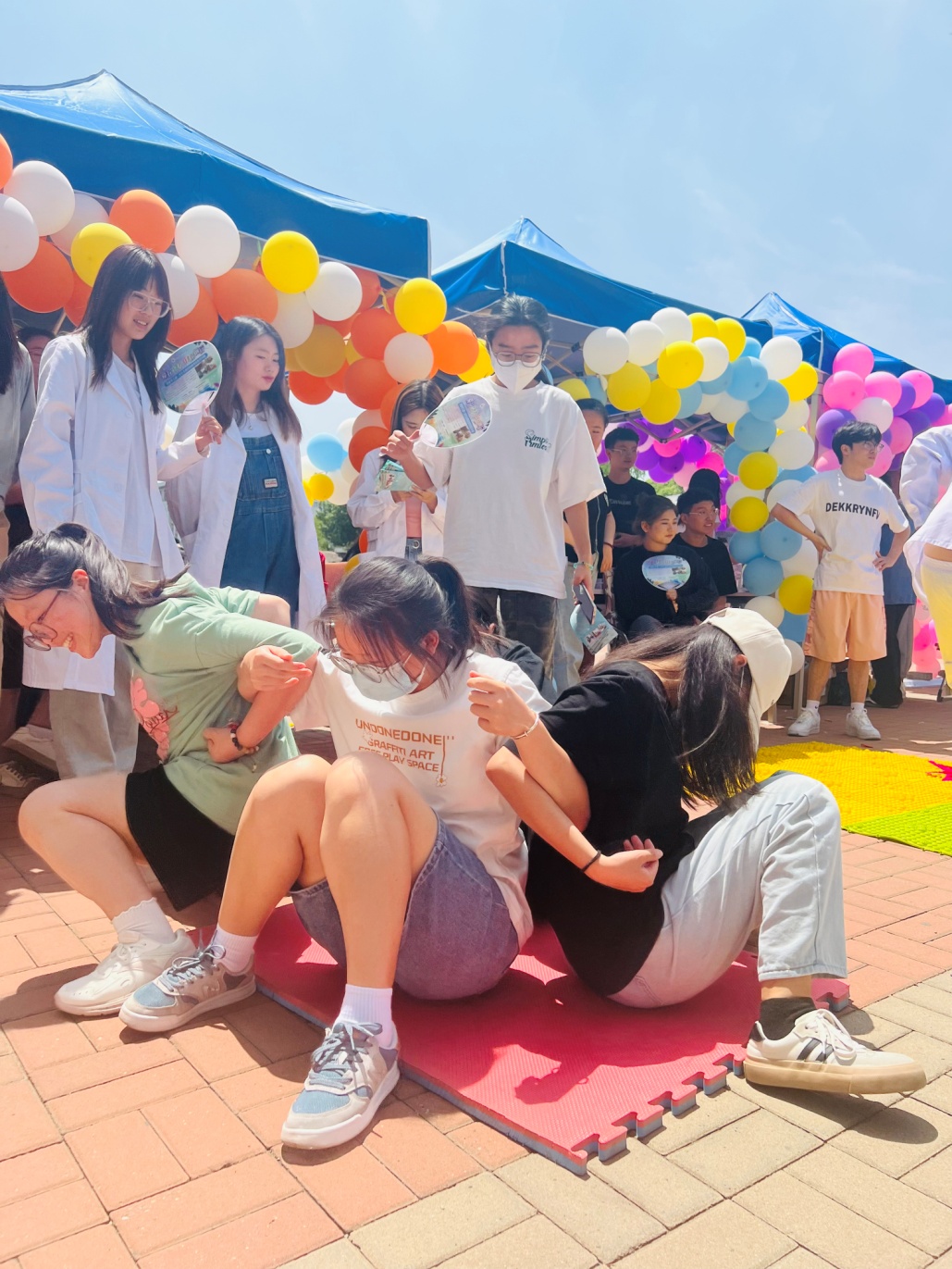 本次心理游园会活动以集章和闯关方式进行,共计8个竞技关卡,分别是投壶、同心协力、珠行千里、传声筒、齐心合力、同心鼓、钢铁意志和双人对战,这些闯关项目都能让学生们在活动中获得注意力、意志力和团队合作精神等心理价值的提升。学生手持通关手册(心理健康教育宣传手册)在通过8个关卡后都会得到相应的印章,集满印章后还能到体验台和兑奖处兑换风筝、中药香囊、DIY免烤胶和定制笔记本等礼物。本次游园会历时两个月的准备时间,各项活动设计合理、准备充分,特别是在两周前,我们组织各个班级开展了风筝DIY活动,同学们按照自己的喜好描绘风筝图案,带到游园会现场进行放飞。虽然游园会当天天气炎热,但丝毫不能影响同学们参与活动的热情,同学们重拾青春的活力,放飞自由的心灵,在游园会上尽情享受着青春的快乐。