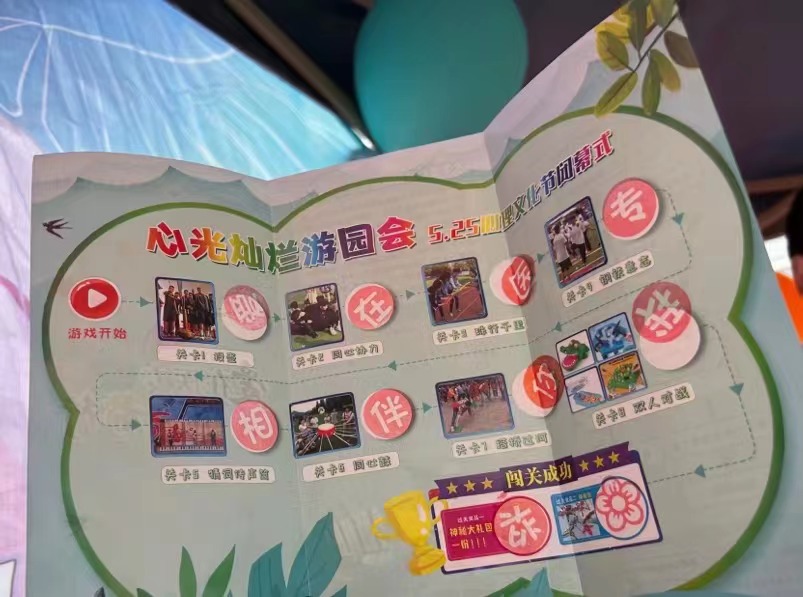 本次游园会在活动现场还布置了两个特色展区,一个是大学生心理健康知识科普宣传展区,心理中心用展牌向同学们宣传了大学生心理健康的标准、学校心理危机干预的四级预警制度、《公众心理科普纲要》科普内容以及阳光心理热线;另一个展区是心理游园会打卡区,由“心光”辅导员工作室的老师们根据大学生心理发展的特点和学生们的喜好,结合心理游园会主题,打造了8个打卡拍照的区域,让学生们通过竞技、娱乐、打卡等形式,全方位放松愉悦身心。