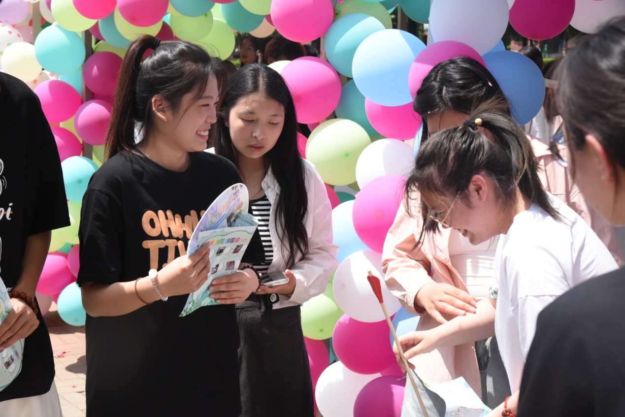 2023年5月23日中午,党委学工部大学生心理健康教育指导中心在文化广场举行“5·25”心理文化节——“心光灿烂”心理游园会。校党委副书记、副校长左红应邀参加活动。党委学工部、团委、各学工支部负责人和全体辅导员老师与学生一同参加。