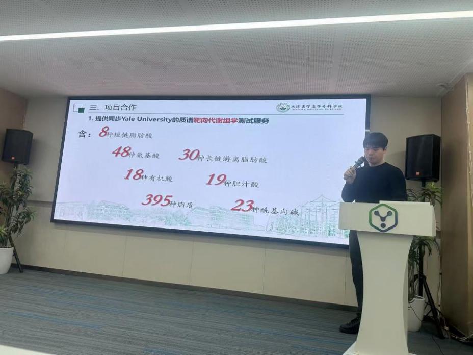 张彦文校长介绍了学校的办学定位与发展成果。他指出,天津医专始终以“服务基层医疗、赋能康养产业”为办学特色,在全国卫生职业院校中处于领先地位,其质谱应用技术实验室是全国第三家通过CNAS认证的高校实验室,彰显了职业教育的科研实力。作为卫生职业院校的领头羊,学校与企业的合作不仅致力于打造标杆性模式,更愿将成熟经验辐射全国、凝聚行业协同,与兼具全国视野的企业深化联动、共促发展。针对合作方向,张校长提出三点期待:一是深化人才培养合作,围绕企业需求优化课程设置,培养“下得去、用得上”的复合型技术技能人才;二是强化师资队伍建设,推动教师深入企业一线“学徒式”研修,提升实践教学能力;三是推进产学研共赢,聚焦行业实际需求开展科研攻关,助力企业技术转化。他诚挚邀请企业专家团队赴校考察,加快合作落地。