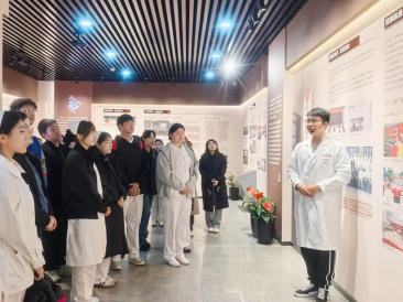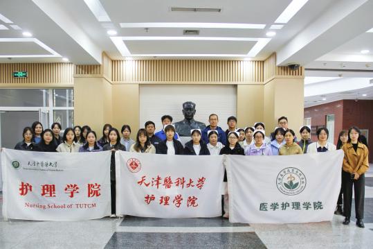 三校师生代表首先集体走进天津医科大学校史馆,在讲解员的专业引导下,循着时间脉络系统回顾该校自1951年建校以来的发展历程——从初期的学科奠基到如今的内涵式发展,从护理教育模式的探索到人才培养体系的成熟。过程中,师生们重点感悟“求真至善、德高医粹”校训精神如何融入护理人才培养全流程,从课程设置、实践教学到职业素养培育的具体体现。这场沉浸式校史研习,让三校师生清晰认知彼此的历史渊源与共同的护理职业使命,不仅强化了“医卫同源、育人为本”的理念认同,更为后续各环节的深度交流筑牢了思想根基。