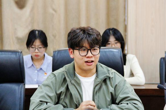 在参观过后,三校师生来到会议室,各校学生代表依次对学生工作的开展进行了工作汇报分享,内容涵盖思想引领、组织建设、人才培养、志愿服务、文体活动及品牌项目等方面。