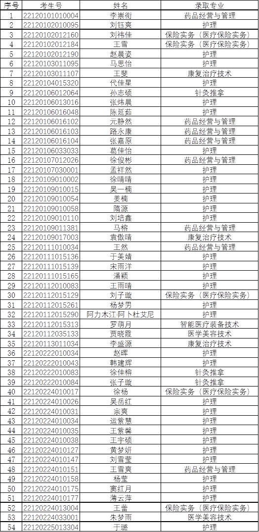 天津医学高等专科学校2022年春季中职管理类录取名册