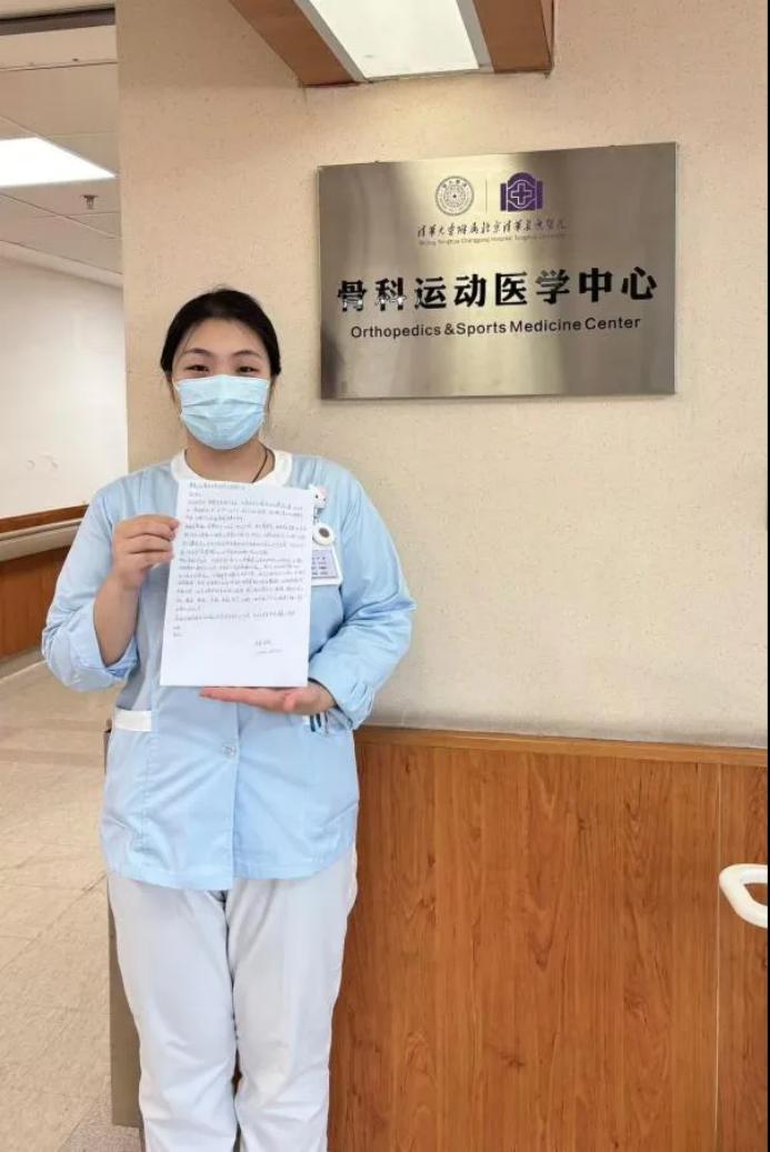 我校医学护理学院护理系实习生于璐,在北京清华长庚医院骨科运动医学中心实习期间,对住院患者蔡奶奶关怀备至,悉心照顾,收到了蔡奶奶女儿的亲笔感谢信,以表达对医务工作者在护理工作中的认可。