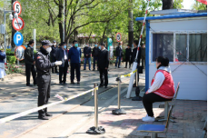 下午2点检查组一行刚到学校,经过了体温检查、绿码出示、“津门战役”扫描成功、信息登记后,立即开始了对学校关于入校管理的随机询问,台账查阅。并观看了发热应急处置模拟演练,对校门口的临时隔离点设置,发热学生的转送处置等进行了合规性检查。