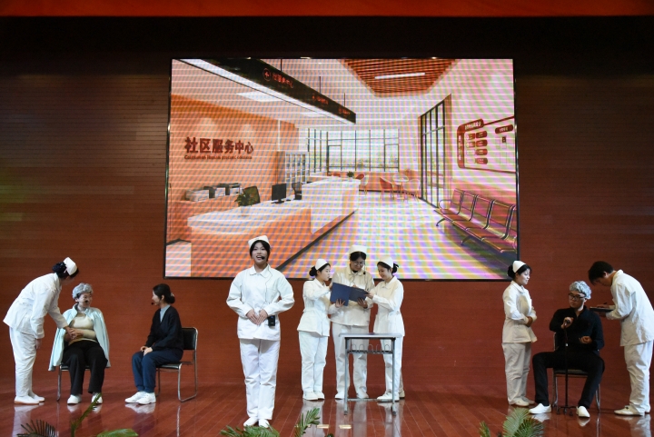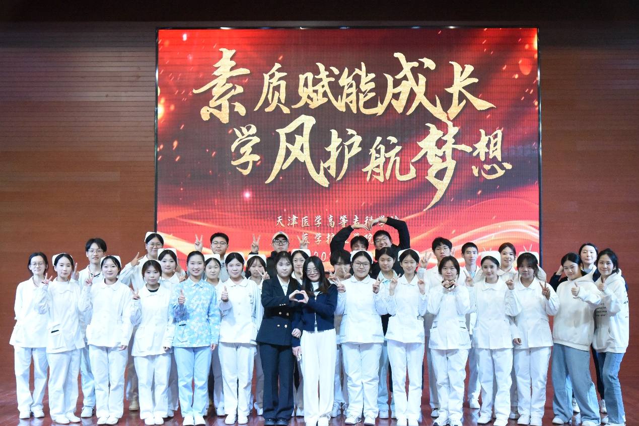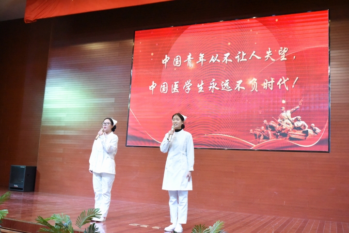 文艺展演环节精彩纷呈:舞蹈《如愿》以轻盈舞姿传递医学生救死扶伤的理想与“天下无疾”的期许;歌曲联唱《紫荆花》《辞家》等抒发学子对家国的眷恋与奔赴医学理想的决心;手势舞《你的答案》活力满满,展现医学生不畏挑战的求索精神;话剧《津门护暖微光成炬》取材真实临床故事,通过日常照护、紧急救援的生动演绎,刻画护理工作者的专业与温情,彰显医学人文精神。手势舞《少年中国说》将氛围推向高潮,成为全体医学生传承学风、担当时代责任的青春宣誓。