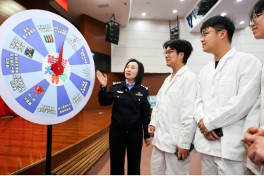 禁毒知识讲座环节,戒毒警察结合真实案例讲解毒品成瘾的生理机制与新型毒品的变异趋势,护理系学生代表立足专业,分享对成瘾性药物的认识、麻精药品的规范使用等内容。警护互补联动的宣讲形式让防毒拒毒理念更加深入人心