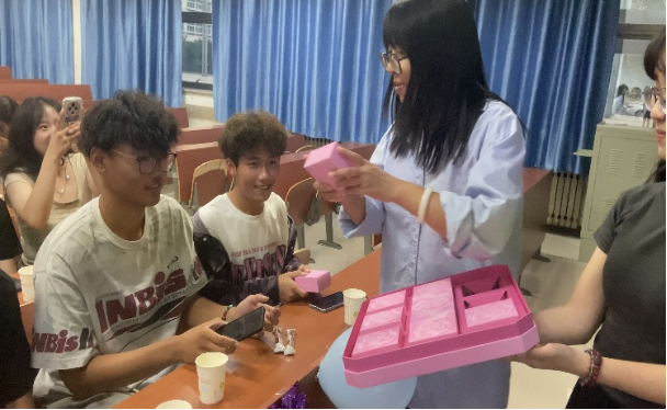 期间,药学与生物技术学院还为24级新生举行中秋节文化活动,师生共同庆祝这一中华民族传统节日。活动开始前,辅导员给新生发放了月饼,学生们纷纷表示“月饼虽小,情深意重”,这不仅是一份节日的礼物,更是老师对他们无微不至关怀的体现。节目展示环节中,学生以寝室为单位展示才艺,不仅有歌舞表演,还有相声小品等,大合唱环节让24级的新生相互间有了更深入了解和互动;互动游戏环节中数字炸弹、答非所问……各种各样的游戏活动给新生带去了欢乐,也增进了同学们之间的感情。活动最后,集体合照记录下了节日开心的瞬间。