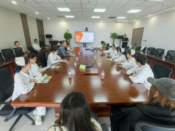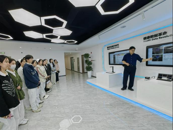 活动第一站,师生们抵达天津智汇云界科技发展有限公司总部。企业负责人结合当前大健康产业发展背景,详细讲解了智能医疗领域的发展前景、技术革新方向,重点介绍了公司自主研发的智能诊疗设备的核心功能、应用场景及市场化运营模式,让同学们对智能医疗与护理专业的融合发展有了更直观的认知。