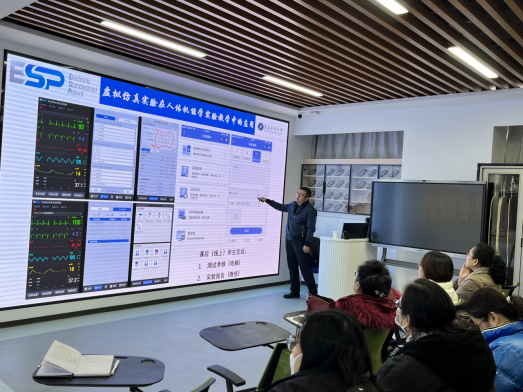 在首先进行的公开课中,张教授以“失血性休克及其抢救虚拟实验”为例,从临床案例导入、案例分析汇报及点评到ESP标准化虚拟病人操作、课堂小结及测验,全方位全流程展示了ESP虚拟实验在课堂教学中的应用,为我校老师打开了虚拟实验课堂应用的新思路。