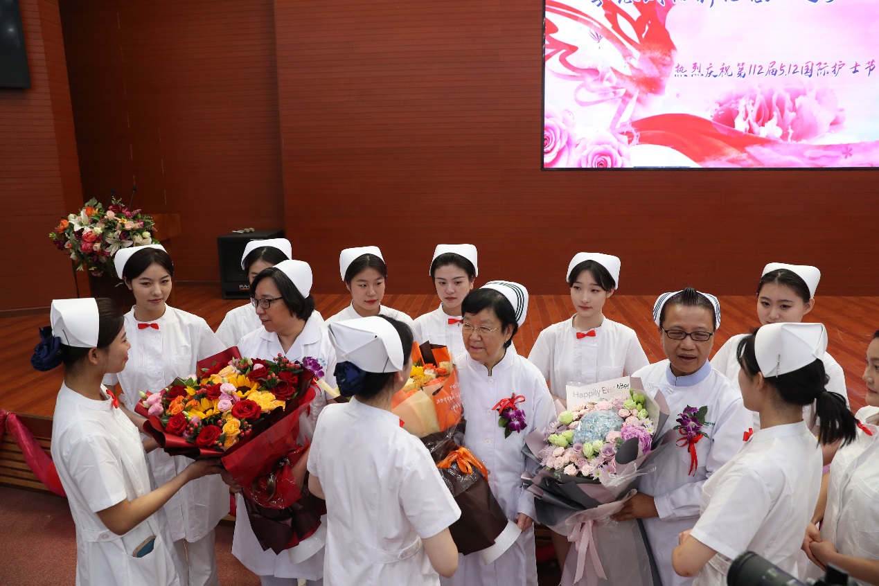 最后,陈书记对护理系师生们提出几点希望:一是希望护理系全体教育工作者,坚守为党育人、为国育才崇高使命,科学地规划专业未来的发展方向,使专业不断向更高的目标迈进,引领护理职业教育高质量发展,为健康中国建设培养更多优秀的护理人才;二是希望同学们志存高远,铭记初心。始终牢记习近平总书记“把人民群众生命安全和身体健康放在第一位”的嘱托,在党的旗帜引领下,把青春奋斗融入“中国梦”的伟大实践中,为国家卫生健康事业的发展贡献出无限的青春力量!三是希望同学们薪火相传,不负时代。追随陈路得、关小瑛、王桂英、梅玉文、陈荣秀等我校南丁格尔奖获得者前辈们的足迹,践行青春誓言,在未来护理工作岗位中,用真爱传递温暖,用真心守护病患。四是希望同学们全面发展,健康成才。学校是健康卫士的摇篮。大学时期是成长、成才的关键期,在这里你们将学会做事、学会做学问、学会做人,在医专百年文化滋养中成长为有深厚家国情怀,有担当、有作为,全面发展的时代新人!