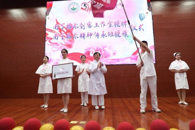 接着,南丁格尔奖获得者陈荣秀前辈为南丁格尔创客工作室进行授牌、南丁格尔精神传承班授旗。