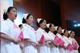 授帽仪式后,师生们献上一系列精彩纷呈的表演。充满青春活力的歌唱、曼妙灵动的舞姿……歌舞《白衣长城》、大合唱《护理系系歌》、《中国护士之歌》,展现了医专学子别样的风采和昂扬向上的精神风貌。 “白衣天使 建功新时代 呵护每一个生命 践行着大爱 坚守着护理事业 初心不改 不辱使命 用青春奋斗 成就未来”,经情感升华的歌承载着赞美,传递着能量,抒发了“敬佑生命、大爱无疆”的南丁格尔精神。至此,5.12国际护士节庆祝活动圆满落下帷幕。