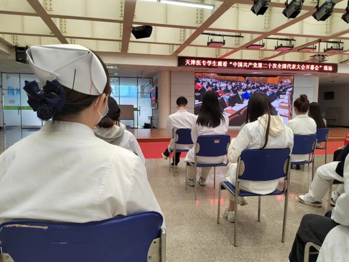 大会开幕,护理系师生在报告厅、党团活动室、教室、学生宿舍等地,通过电视、网络、广播等多种方式认真聆听、学习党的二十大报告。收看开幕会结束后,师生纷纷表达了对党的二十大胜利召开的深刻感悟。