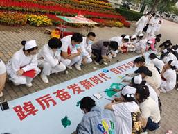 “江山不改旧时容,千秋万代奋斗中。我们传承人道、博爱、奉献的精神,践行敬佑生命、救死扶伤、甘于奉献、大爱无疆的职业精神,用精诚仁爱之心和精湛的护理技能帮助患者恢复健康,服务祖国医疗护理事业……”活动中,同学们用诗歌表达对祖国的无限热爱、对党的真挚感情。在诗歌中穿越年轮,看硝烟中的青春模样,看坚守中的初心使命,看浴血奋战后的山河无恙。