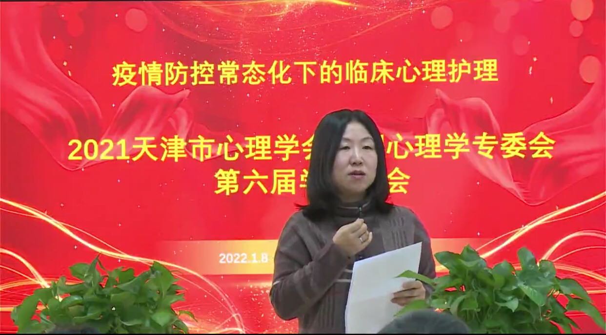 1月8日,天津市拉开了奥密克戎病毒阻击战的序幕,当天也是天津市心理学会护理心理学专委会组织召开年会的日子。年会采用线上线下相结合方式进行,天津医学高等专科学校党委书记陈振锋教授、天津市心理学会秘书长杨海波教授应邀出席现场并致辞,专委会领导和部分委员单位代表十余人出席会议现场,其他委员线上参会。1月21日经过全市人民的共同努力,天津宣布“本土疫情得到有效控制,实现社会面清零”,专委会全体委员都是这场战役的主力军。考虑年会当天各医院迅速组织投入抗疫工作,专委会再次组织各委员单位观看年会视频。本次会议以“疫情防控常态化下的临床心理护理“为主题, 邀请副主委单位天津市第一中心医院原护理部主任,预防保健处王申主任护师担任嘉宾主持。