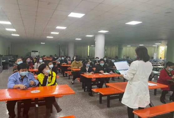 11月5日,技术指导组开展消毒专项培训,培训对象包括宿舍管理员、物业保洁人员、食堂从业人员、保安队员。