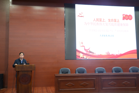 9月28日,天津医学高等专科学校结合党史学习教育,在市卫健委工会指导支持下,组织开展了“学习劳模精神奏响奋进之歌”劳模精神进校园宣讲会。学校党委书记陈振锋同志,学校党委副书记、副校长左红同志,市卫健委工会主席吴璠同志,市卫健委工会四级调研员常健同志出席了本次活动,学校教师、学生代表300余人聆听了此次宣讲。