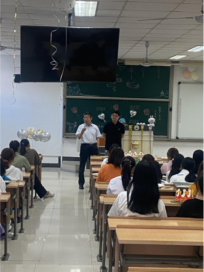 2021年9月21日正值中国传统中秋佳节,在疫情防控学生不能返乡的情况下,护理系2109中西医、21220、21221、21222等班级在辅导员老师的组织下,在博学楼B202教室举办中秋联欢活动,活动邀请张彦文校长莅临现场。