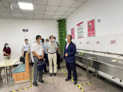 在学生食堂查看了用餐人员测温、手消、通风消毒、限流等环节。