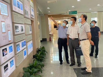 在教学楼查看教室通风消毒等防疫措施,并听取了学校校史馆介绍讲解。