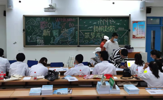 此次迎新,学院精心设计了两块展板悬挂在迎新教室后方--“医路人生--我和大学的第一张合影”,每位新生都在这块展板前留下了青春洋溢的笑脸,纪念着这一刻她们对大学的无限憧憬。一丝微笑,一声问候,无不流露出我院对新生的关怀呵护,也让初踏大学校门的学子们真实的感受到药学生物与医技健康学院大家庭的温暖。