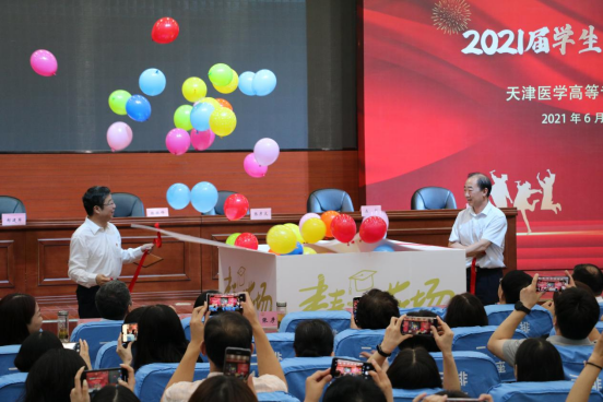 在典礼的最后,陈振锋书记和张彦文校长与毕业生代表共同放飞了承载着梦想、希望和欢乐的彩色气球,表达对毕业生的祝愿。愿2021届毕业生不忘初心,勇往直前!愿历尽千帆,归来仍是少年!!
