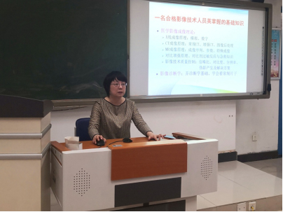 天津市第一中心医院放射科倪红艳主任为医学影像技术专业学生进行专业教育。倪主任通过讲述医学影像技术在抗击新冠肺炎过程中发挥的重要作用,强调影像技术医务工作者扮演角色和应当具备的职业素养,帮助同学们分析了未来职业发展方向。