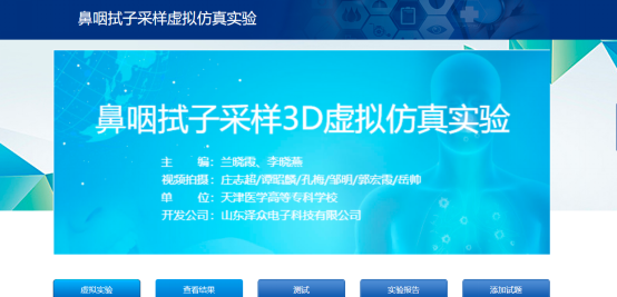 按照天津市卫健委基层处要求,对“天津市大规模核酸采样队伍”全员,从9月30日至10月1日进行了为期10天的在线培训与考核。本模块培训资源包括:基于天津医学高等专科学校“预防医学专业虚拟实训平台”开发的“鼻咽拭子采用3D虚拟仿真实验”和拥有独立版权的“鼻咽拭子采样采用操作视频”,采用线下操作视频反复学、虚拟实验引导模式反复练、虚拟实验考核模式检验学习效果的三合一强化培训模式,共计完成16238人的培训与考核,参训比例达到91.43%,其中“鼻咽拭子采样操作视频”学习人数达9000多次。为保障本次线上培训顺利进行,项目组还建立了项目负责人、区卫健委负责人、各单位联系人、参训人员四级组织架构,制定了明晰的培训流程,并专人全天全程在线答疑。