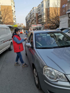在这个非常时期,本着“不漏一户、不漏一人”的严谨精神,王晓宇跟随社区工作人员一起挨个楼栋宣传防疫手段和自我防护的重要性。在小区门口测量体温,对出入人员进行登记,即使在寒冷的天气,她带着手套穿着棉鞋用冻僵的双手为来往人员进行登记,为居民建起一道安全防线。
