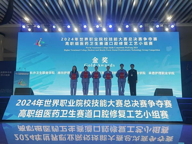 医护学院(口腔系)刘畅、汪贤哲、张含、范思宇团队在口腔修复工艺组中获得金奖