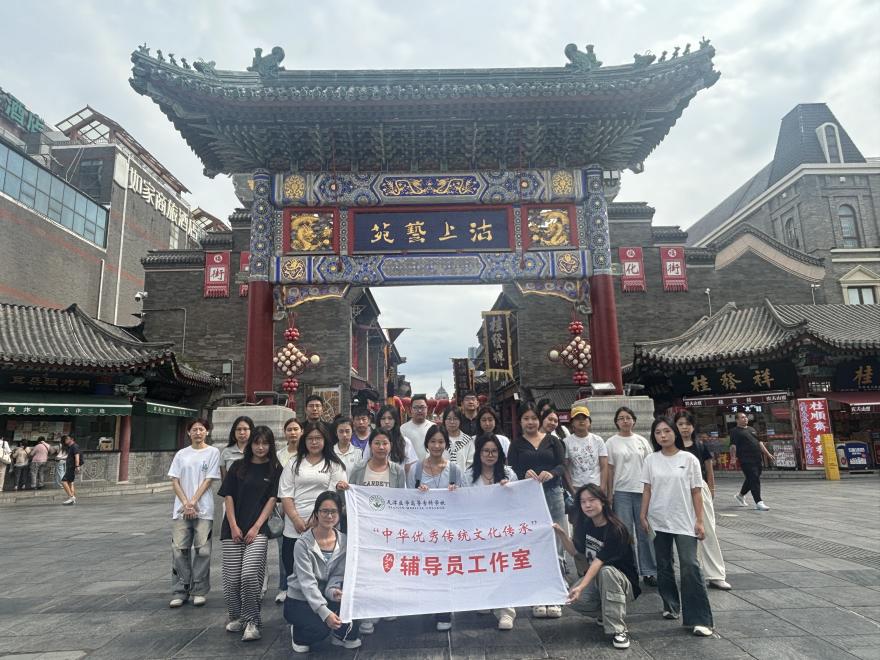 为引导青年学生深刻理解习近平文化思想,深入挖掘天津城市文化与历史底蕴,深化中华优秀传统文化教育,9月16日下午,我校“弘文”中华优秀传统文化辅导员工作室组织师生赴天津古文化街开展历史与民俗探索活动。通过沉浸式文化体验,引导青年学子深刻理解天津作为国家历史文化名城的独特魅力,增强文化自信与传承使命。