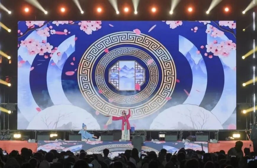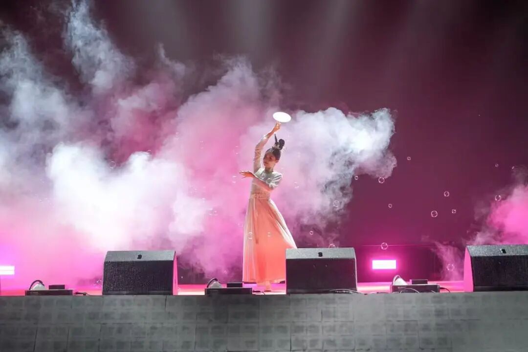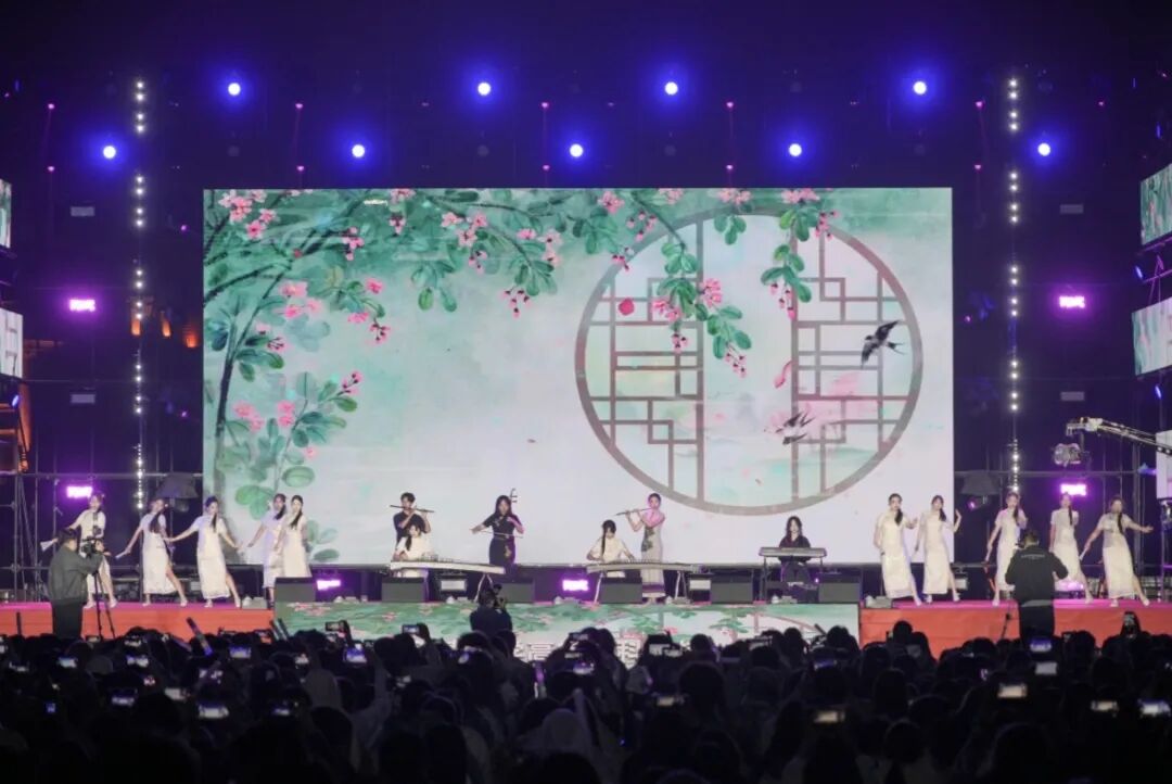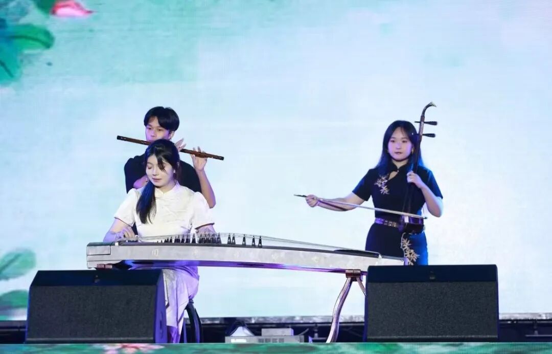 艺术团乐器部与民舞部合作的乐团合奏《咏春》,乐器声悠扬婉转,舞者身姿轻盈灵动,音舞相融,为观众呈现了一场极具美感的视听盛宴。