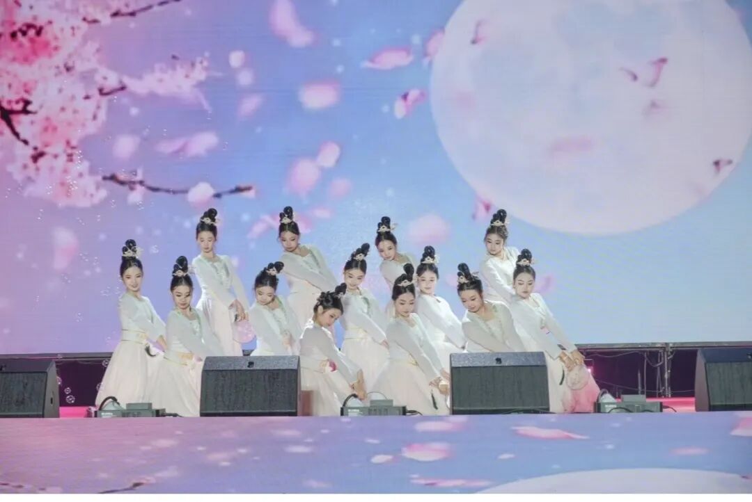 校艺术团民舞部带来的古典舞《清庭云月》韵味十足,舞者身着雅致服饰,每一个转身、每一次抬手都尽显东方古典之美,让观众仿佛置身于诗意画卷之中。