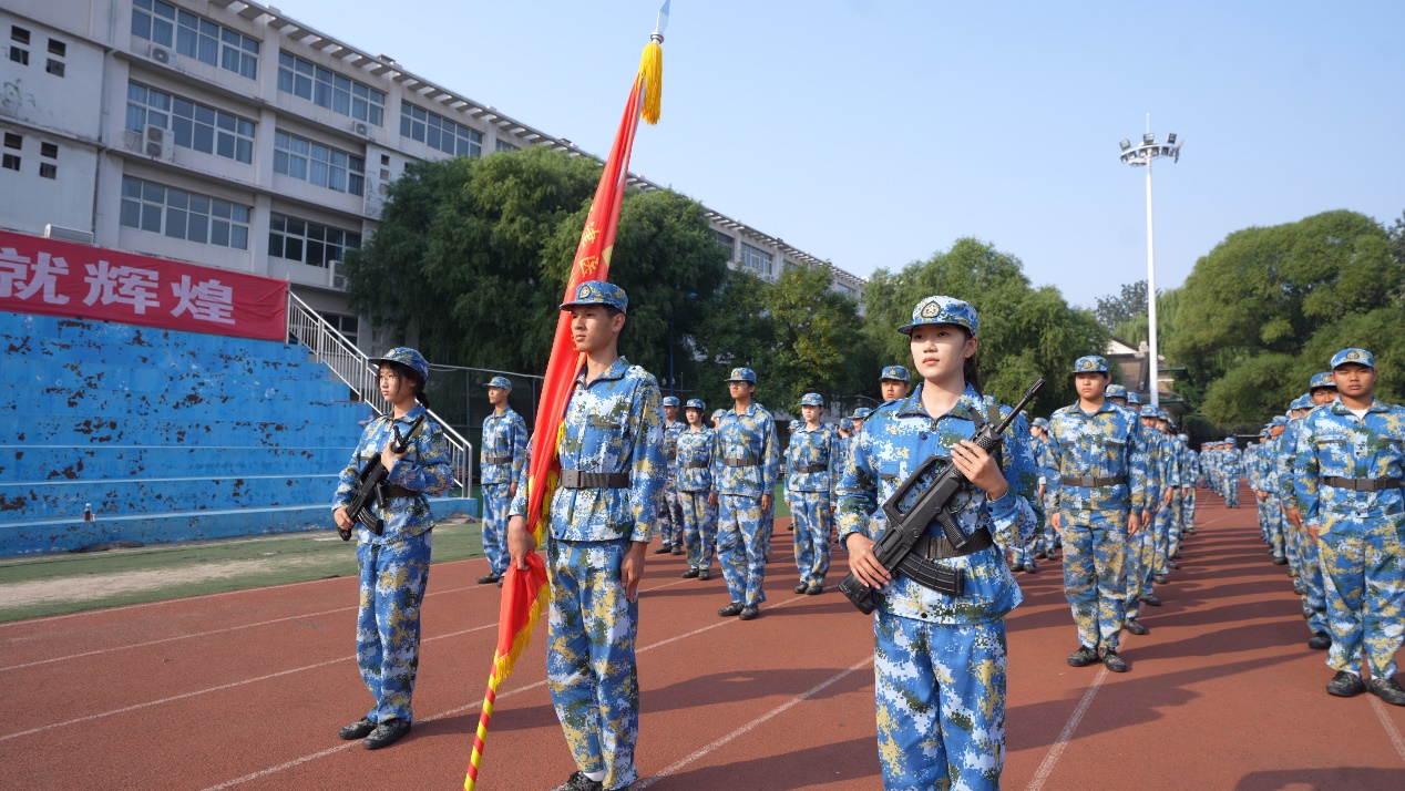 在分列式展示中,同学们军容严整、士气高昂,以挺拔的军姿、整齐的步伐、嘹亮的口号,接受学校领导和老师们的检阅。