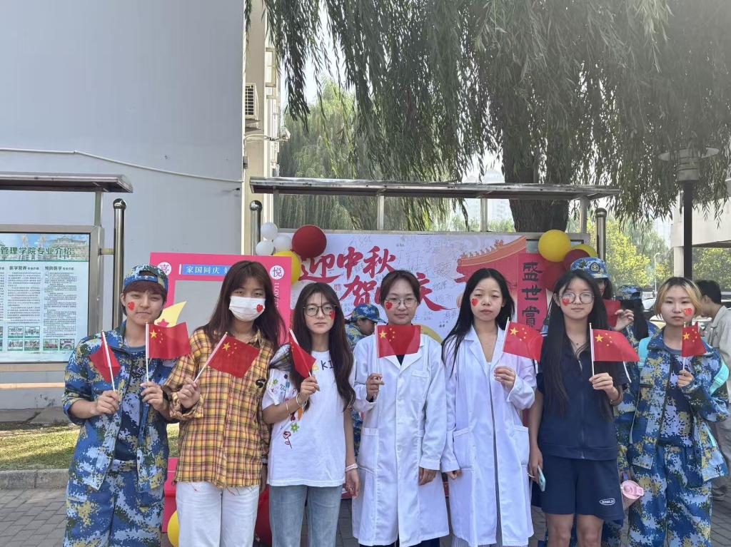 “祝祖国繁荣昌盛!”“青春向党,强国有我!”“愿山河无恙,国泰民安!”……一句句真挚的祝福,汇聚成医专学子对祖国母亲的深情告白。同学们手持鲜艳的小国旗,脸上贴着心形的国旗贴纸,灿烂的笑容与“中国红”交相辉映,构成了一幅动人的画卷。