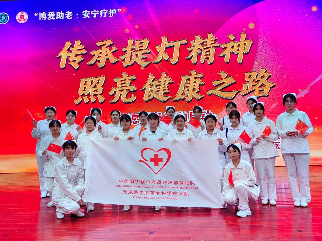 2025年9月23日,由市红十字会、市卫生健康委、市民政局联合举办的“传承提灯精神,照亮健康之路——‘博爱助老•安宁疗护’志愿服务行动启动会”在天津音乐厅顺利举办。本次活动旨在深入学习贯彻习近平总书记关于健康中国的重要论述和关于红十字事业重要指示批示精神,弘扬救死扶伤优良传统和南丁格尔精神,我校南丁格尔志愿护理服务队师生代表参加此次活动。