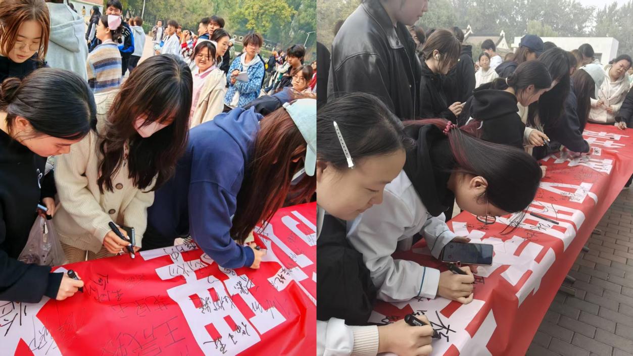 10月28日校园食堂正门前广场上,药检系学生会联合团总支面向全校师生开展“文明之星”签名倡议宣传活动,活动现场,每一名师生都可在倡议横幅上签下名字,参与互动的师生还可领取各种小礼品。这不仅是一次签名仪式,更是对校园文明新风的集体响应,意在鼓励全体同学以“文明之星”为榜样。