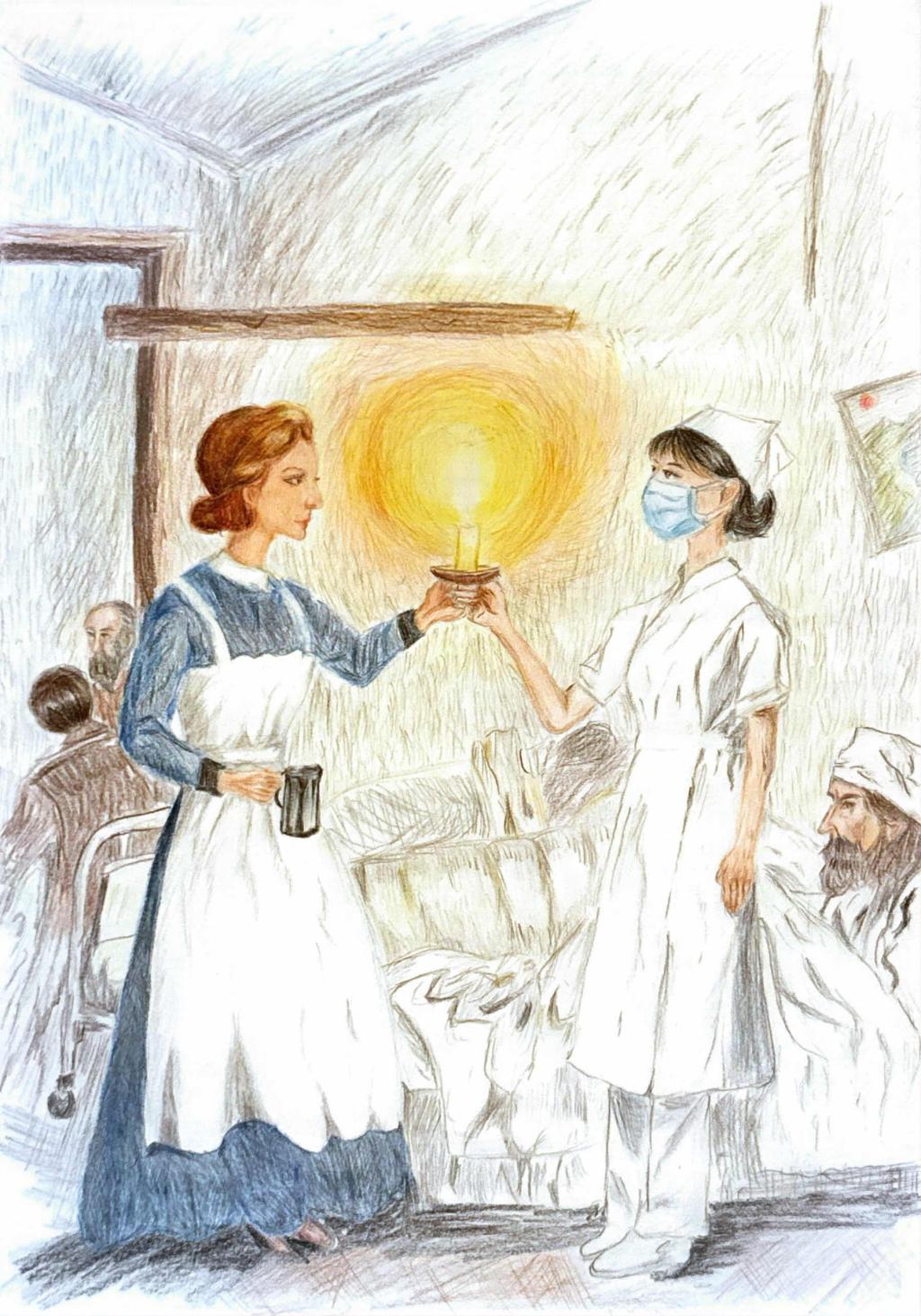 设计理念:19世纪的南丁格尔持烛而来,烛火递向当代护士——这束光,是护理精神的火种。从战地病房到现代诊室,救死扶伤的温度跨越时空,以人文关怀为患者擎起希望,也让行业使命在接力中永续。